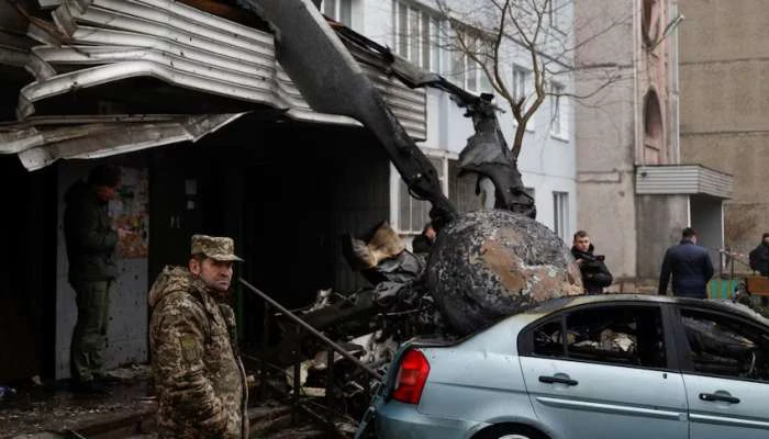 రష్యాతో యుద్ధంతో అతలాకుతలమౌతున్న ఉక్రెయిన్లో మరో పెను దుర్ఘటన చోటుచేసుకుంది. ఘోర ప్రమాదం జరిగింది. కీవ్ నగరంలోని బ్రోవరీ టౌన్ కిండర్గార్టెన్ సమీపంలో హెలీకాప్టర్ కుప్పకూలి ఏకంగా 18 మంది దుర్మరణం చెందారు. హెలీకాప్టర్ దుర్ఘటనలో మరణించినవారిలో ఆ దేశపు హోంమంత్రి, డిప్యూటీ హోంమంత్రి, విదేశాంగమంత్రి సహా పలువురు ఇతర మంత్రులున్నారు. ఇద్దరు పిల్లలు కూడా ఉన్నట్టు తెలుస్తోంది. హోంశాఖ మంత్రి డేనిస్ మోనాస్థిరిస్కీ సహా పలువురు ఉన్నతాధికారులు ఈ దుర్ఘటనలో ప్రాణాలు కోల్పోవడం అత్యంత విషాదకరం. జనావాసాల మధ్య హెలీకాప్టర్ కూలడంతో ప్రాణనష్టం పెరిగిందని తెలుస్తోంది.