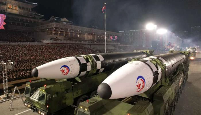 ఉత్తర కొరియాలో సైన్యం ఏర్పాటు చేసి 75 ఏళ్లు పూర్తయిన సందర్భంగా బుధవారం భారీ సైనిక కవాతు నిర్వహించింది. ఆ దేశ రాజధాని ప్యాంగ్యాంగ్లో కొరియా సైన్యం నిర్వహించిన ఈ కవాతులో మారణాయుధాలు, అతిపెద్ద క్షిపణులు ప్రదర్శించారు. గతంలో ఎన్నడులేనంతగా తొలిసారి ఖండాంతర బాలిస్టిక్ క్షిపణులను ఈ కవాతులో ప్రదర్శించడం విశేషం. ఇందుకు సబంధించిన చిత్రాలను ఆ దేశ మీడియా రిలీజ్ చేసింది. ఈ వేడుకను ఉత్తర కొరియా నియంత కిమ్ జోంగ్ తన భార్య, కుమార్తె కలిసి వీక్షించారు. ప్యాంగ్యాంగ్లోని కిమ్ ఇల్ సంగ్ స్క్వేర్ వద్ద కవాతు ప్రారంభమైంది. కవాతుకు సంబంధించిన చిత్రాలను ఆ దేశ మీడియా విడుదల చేసింది. ఉత్తర కొరియా అణు దాడి సామర్థ్యానికి ఇది కవాతు సాక్ష్యం అని పేర్కొంది. ఈ ఫొటోల్లో 11 హ్వాసాంగ్-17 క్షిపణులు కనిపిస్తున్నాయి. హ్వాసాంగ్-17ను గతేడాది తొలిసారిగా పరీక్షించారు. ఇది ఉత్తర కొరియా అతిపెద్ద ఖండాంతర బాలిస్టిక్ క్షిపణి కూడా ఉంది. ఇది ప్రపంచంలో ఎక్కడైనా అణు దాడి చేయగలదు. కొత్త ఘన ఇంధన ఐసీబీఎం నమూనాలు కూడా కవాతులో కనిపించాయి. పరేడ్ ప్రారంభానికి ముందు అనేక జెట్లు, టర్బోప్రాప్ విమానాలు, రంగురంగుల లైట్లతో కూడిన హెలికాప్టర్లు కిమ్ ఇల్ సుంగ్ స్క్వేర్ పైన తక్కువ ఎత్తులో ఎగురుతూ కనిపించాయి.