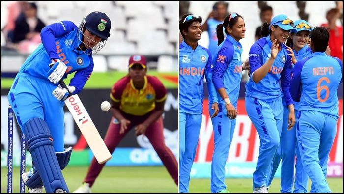 మహిళల టీ20 ప్రపంచకప్లో మన భారత అమ్మాయిలు అదరగొట్టేశారు. గ్రూప్-బీలో వెస్టిండీస్తో జరిగిన మ్యాచ్లో 6 వికెట్ల తేడాతో భారత్ విజయం సాధించింది. వెస్టిండీస్ నిర్దేశించిన 119 పరుగుల లక్ష్యాన్ని 18.1 ఓవర్లలో భారత అమ్మాయిలు ఛేధించారు. షెఫాలీ వర్మ (28), హర్మన్ ప్రీత్ కౌర్ (33), రిచా ఘోష్ (44) రాణించడంతో.. భారత మహిళల జట్టు వరల్డ్ కప్ నెగ్గింది. తొలుత వెస్టిండీస్ బౌలర్లు కట్టుదిట్టంగా బౌలింగ్ వేయడంతో.. బారత్ ఆశలు సన్నగిల్లాయి. కానీ, మన అమ్మాయిలు అంత సులభంగా ఓటమిని అంగీకరించలేదు. విండీస్ బౌలర్లను ధీటుగా ఎదుర్కొంటూ.. ఫైనల్గా జట్టుని గెలిపించారు. Pooja Hegde: ఇకనుంచి ఆఫర్లు కావాలంటే.. పూజా ఆ పని చేయాల్సిందే..? తొలుత టాస్ గెలిచి బ్యాటింగ్ ఎంపిక చేసుకున్న వెస్టిండీస్..