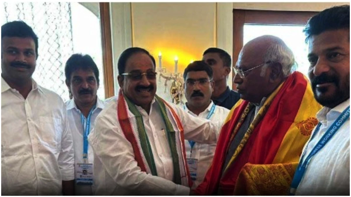 హైదరాబాద్: మాజీ మంత్రి తుమ్మల నాగేశ్వరరావు ఏఐసీసీ చీఫ్ మల్లిఖార్జున్ ఖర్గే సమక్షంలో కాంగ్రెస్ పార్టీలో చేరారు. తుమ్మలకు కాంగ్రెస్ పార్టీ కండువా కప్పి పార్టీలోకి ఆహ్వానించారు ఖర్గే.