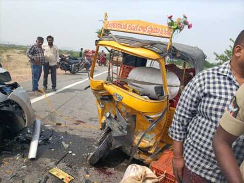 న్యూస్. 9 యాడికి మండలంలోని వేములపాడు గ్రామ సమీపంలో NH 67 రోడ్ మీద గుంతకల్లు వైపు నుండి తాడిపత్రి వైపు కారు వెళ్తూ ఉండి, ఎదురుగా తాడిపత్రి నుండి గుత్తి వైపు వస్తున్న ఆటో ను డీ కొట్టడంతో ఆటో డ్రైవర్ హరికి గాయాలు కాగా, ఆటో లో ఉన్న రామ చంద్రారెడ్డి అనే వ్యక్తి ఆటోలో నుండి కింద పడి తలకు తీవ్ర రక్తగాయం కలిగి అక్కడికక్కడే చనిపోవడం జరిగింది సర్. ప్రమాదం జరగడానికి ముఖ్య కారణం కారు డ్రైవర్ కారు ను అతి వేగంగా అజాగ్రత్తగా బండి నడిపి రోడ్ కి కుడి వైపు పోయి ఎదురుగా వస్తున్న ఆటో ని డీ కొట్టడం వల్ల ఈ ప్రమాదం సంభవించింది గాయపడిన ఆటో డ్రైవర్ ని గుత్తి ప్రభుత్వ హాస్పిటల్ కి తరలించడం జరిగింది ఎస్సై గురు ప్రసాద్ రెడ్డియాడికి పియస్.