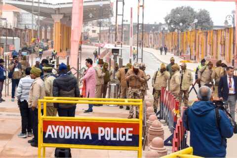 జనవరి 22న అయోధ్యలో రామ మందిర ప్రారంభోత్సవ కార్యక్రమానికి ప్రధాని నరేంద్ర మోదీ వస్తున్నారు. దాదాపు 7 వేల మంది ప్రముఖులు ఈ కార్యక్రమానికి హాజరుకానున్నారు. ఈ నేపథ్యంలో అయోధ్యలో భారీ భద్రత ఏర్పాటు చేశారు. ఎక్కడ చూసినా ఏటీఎస్ కమాండోలు, సీఆర్పీఎఫ్ బలగాలు, పోలీసులు దర్శనమిస్తున్నారు. అయోధ్యలో భద్రతను ఉత్తరప్రదేశ్ ఏటీఎస్ విభాగం పర్యవేక్షిస్తోంది. డ్రోన్లతో ముప్పును అరికట్టేందుకు డ్రోన్ జామర్ వ్యవస్థలను ఏర్పాటు చేశారు.