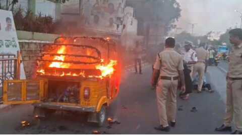 తెలంగాణలో కాంగ్రెస్ సర్కార్ అధికారంలోకి వచ్చిన తర్వాత తమ జీవనోపాధి దెబ్బతింటుందని ఆటోవాలాలు నిరసన తెలుపుతున్నారు. ప్రభుత్వం ఆదుకుంటామని చెబుతున్నా.. నిత్యం ఎక్కడో ఒకచోట నిరసన తెలుపుతున్నారు. గురువాసం సాయంత్రం 6 గంటల సమయంలో ప్రజాభవన్ ఎదుట ఓ ఆటో ఆగింది. అందులో నుంచి దిగిన డ్రైవర్ ఆటోపై పెట్రోల్ పోసి నిప్పంటించాడు. వెంటనే పోలీసులు ఘటన స్థలానికి చేరుకుని మంటలు ఆర్పేందుకు యత్నించారు. కానీ అప్పటికే ఆటో అగ్నికి ఆహుతైంది. ఈ క్రమంలో ఆటో డ్రైవర్ కూడా కాలిపోతున్న ఆటోవైపు వెళ్తుండగా పోలీసులు అతడిని పక్కకు లాగేశారు. ఈ దృశ్యాన్ని చూసి ప్రయాణికులు షాక్ అయ్యారు. ఆటో డ్రైవర్ను మియాపూర్కు చెందిన దేవ్లా నాయక్గా గుర్తించారు.