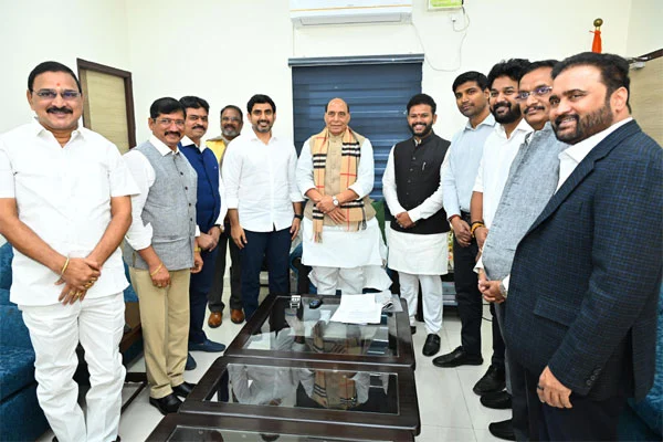 కేంద్ర రక్షణశాఖ మంత్రి రాజ్ నాథ్ సింగ్ ను ఏపీ విద్య, ఐటీ, ఎలక్ట్రానిక్స్ శాఖల మంత్రి నారా లోకేశ్ ఢిల్లీలోని ఆయన నివాసంలో మర్యాదపూర్వకంగా కలుసుకున్నారు. ఈ సందర్భంగా మంత్రి లోకేశ్ రాష్ట్రంలో కూటమి ప్రభుత్వం ఏర్పాటయ్యాక జరుగుతున్న అభివృద్ధి కార్యక్రమాలను ఆయనకు వివరించారు. ఈ సందర్భంగా ఏపీలో డిఫెన్స్ క్లస్టర్ ఏర్పాటు చేయాలని కోరారు.