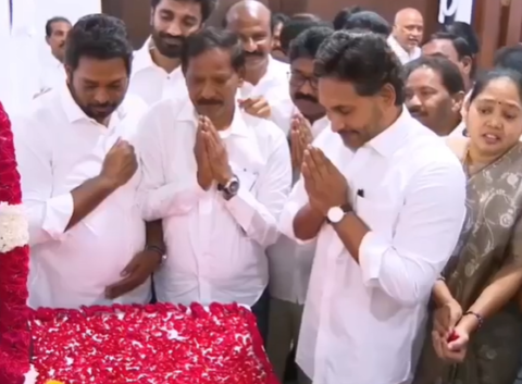 భారత రాజ్యాంగ నిర్మాత, భారతరత్న డాక్టర్ బీఆర్ అంబేడ్కర్ 135వ జయంతి సందర్భంగా వైయస్సార్సీపీ కేంద్ర కార్యాలయంలో మాజీ ముఖ్యమంత్రి, పార్టీ అధ్యక్షుడు శ్రీ వైయస్ జగన్మోహన్రెడ్డి శ్రద్దాంజలి ఘటించారు. అంబేడ్కర్ చిత్రపటానికి పూలు సమర్పించిన శ్రీ వైయస్ జగన్ ఆయనకు ఘన నివాళులర్పించారు.