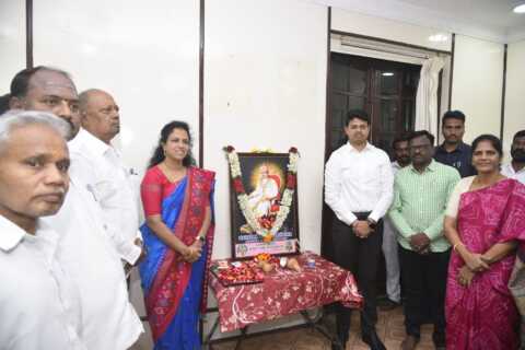 చరణ్ శ్రీ బసవేశ్వర చిత్రపటానికి పూలమాలలు